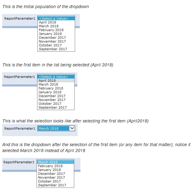 One of our customer has an issue to selected item from report parameters dropdown.