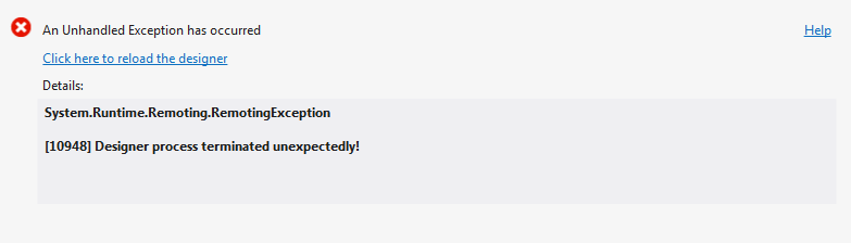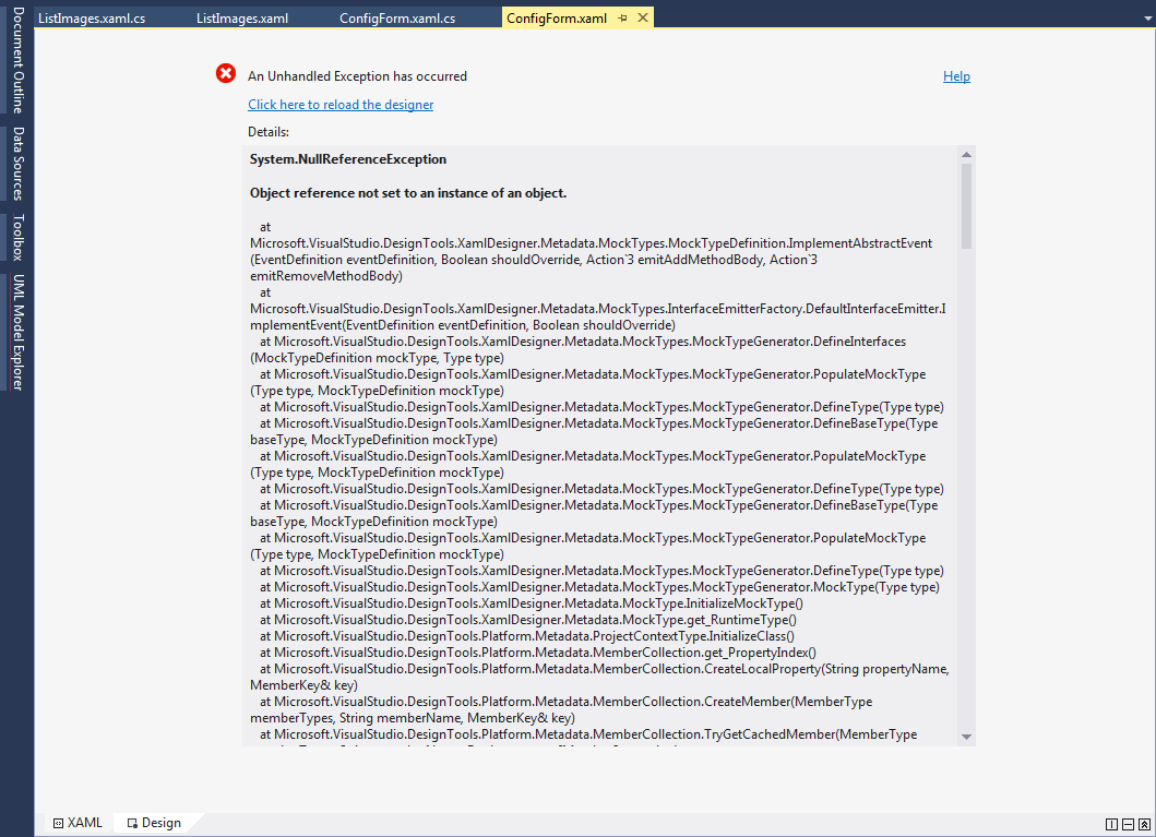 Hi, I am working in WPF with Telerik Controls, I've implemented the Windows 8 theme, but after implement this theme my Design Area for each new Window or user Control, looks like the image that I've attached to this post, some one else have this issue?.