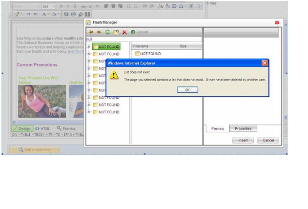 I uploaded the file in the flash manager, added to the page, but then when i wanted to change the size, it shows the error below (see attachment)