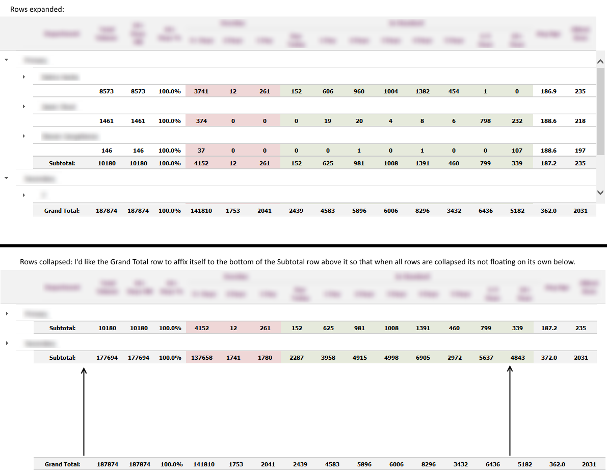I'd like my Grid footer--where I have my grand totals to display--to move when rows within the grid are collapsed.