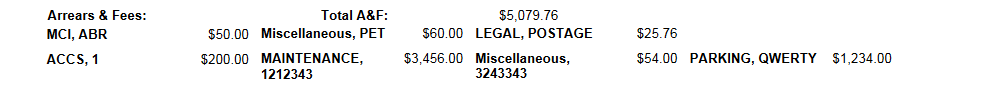 One of the Fields of this data class is a sub-list of Name/Value pairs - fees - with a short description and a dollar amount.