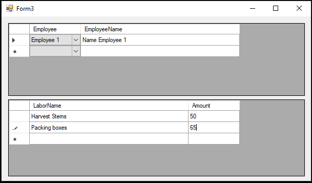 DataTable masterTable = new DataTable(); DataTable childTable = new DataTable(); public RadForm1() { InitializeComponent(); masterTable.Columns.Add("Id", typeof(int)); masterTable.Columns.Add("Name", typeof(string)); for (int i = 0; i < 3; i++) { masterTable.Rows.Add(i, "Row" + i); } childTable.Columns.Add("Id", typeof(int)); childTable.Columns.Add("ParentId", typeof(int)); childTable.Columns.Add("Title", typeof(string)); childTable.Columns.Add("Date", typeof(DateTime)); Random rand = new Random(); for (int i = 0; i < 20; i++) { childTable.Rows.Add(i, rand.Next(0, 3), "Child" + i, DateTime.Now.AddDays(i)); } radGridView1.DataSource = masterTable; radGridView1.AutoSizeColumnsMode = GridViewAutoSizeColumnsMode.Fill; GridViewTemplate template = new GridViewTemplate(); template.DataSource = childTable; template.AutoSizeColumnsMode = GridViewAutoSizeColumnsMode.Fill; radGridView1.MasterTemplate.Templates.Add(template); GridViewRelation relation = new GridViewRelation(radGridView1.MasterTemplate); relation.ChildTemplate = template; relation.RelationName = "MasterChild"; relation.ParentColumnNames.Add("Id"); relation.ChildColumnNames.Add("ParentId"); radGridView1.Relations.Add(relation); this.radGridView1.UserAddedRow+=radGridView1_UserAddedRow; } private void radGridView1_UserAddedRow(object sender, GridViewRowEventArgs e) { e.Row.IsExpanded = true; this.radGridView1.CurrentRow = ((GridViewHierarchyRowInfo)e.Row).Views[0].TableAddNewRow; this.radGridView1.CurrentColumn = this.radGridView1.MasterTemplate.Templates[0].Columns[0]; this.radGridView1.BeginEdit(); }