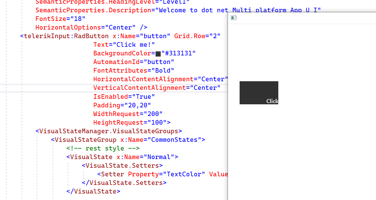Hi Allen, can you please try the same experiments with the MAUI Button? The reason I ask this is because it is critical you separate what is the responsibility of the Telerik layer and what is from the MAUI layer.