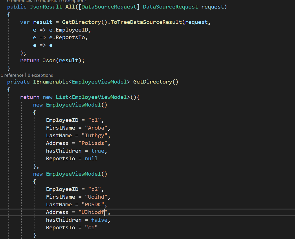 .AddJsonOptions(options => options.SerializerSettings.ContractResolver = new DefaultContractResolver());The above you can find in the Getting Started article that demonstrates how to configure an ASP.NET Core project to use Telerik UI for ASP.NET Core.