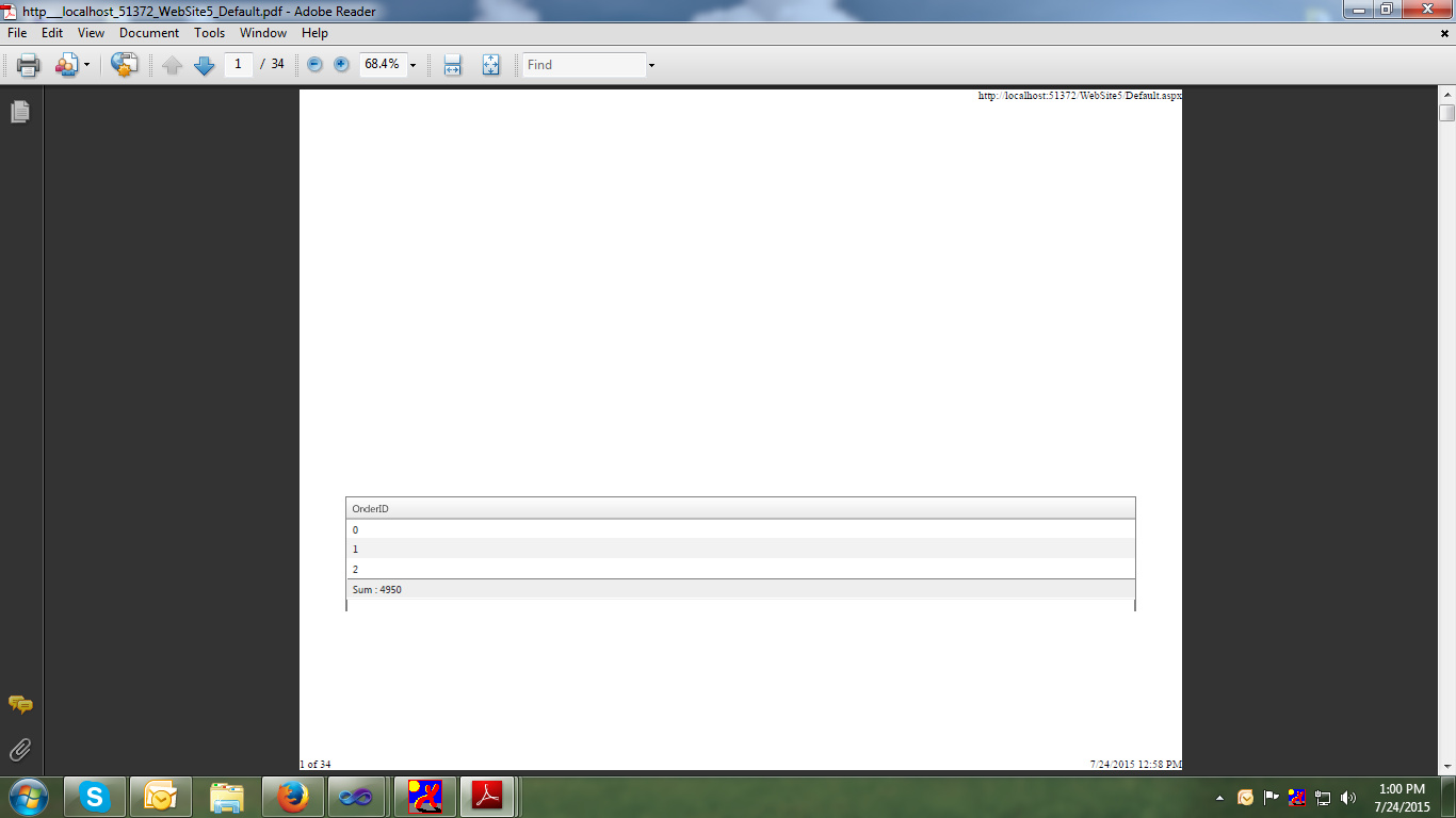 Greetings! I am using a RadGrid control that contains a footer which therein i am summing a column. I want to be able to print the page from the browser, however the footer appears on each page that is displaying the sum value of the column. I tried setting paging to false but to no avail. I need to show the footer only on the last page, any help greatly appreciated!