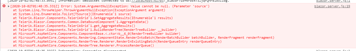 When attempting to implement a Footer Template on a Grid Column, I am getting the following runtime errors: "Unhandled exception rendering component: Value cannot be null" and "Unhandled exception rendering component: Object reference not set to an instance of an object". I have tried something as simple as