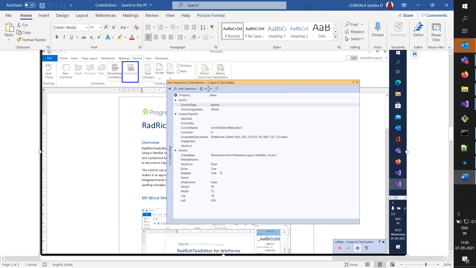 I tried to fetch the Enabled state of DeleteAll button of Review tab as shown in attached figure, which is always true.
