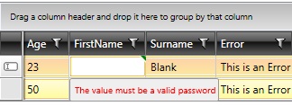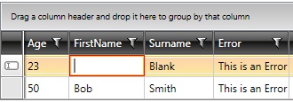 If I now utilise IDataErrorInfo (but the same GridViewEditorPresenter) then the styling is completely different.