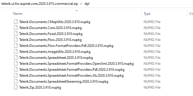 What I want is simply the way it used to be up until recently - the .zip file contained ALL the files. Now, it contains nupkg files.