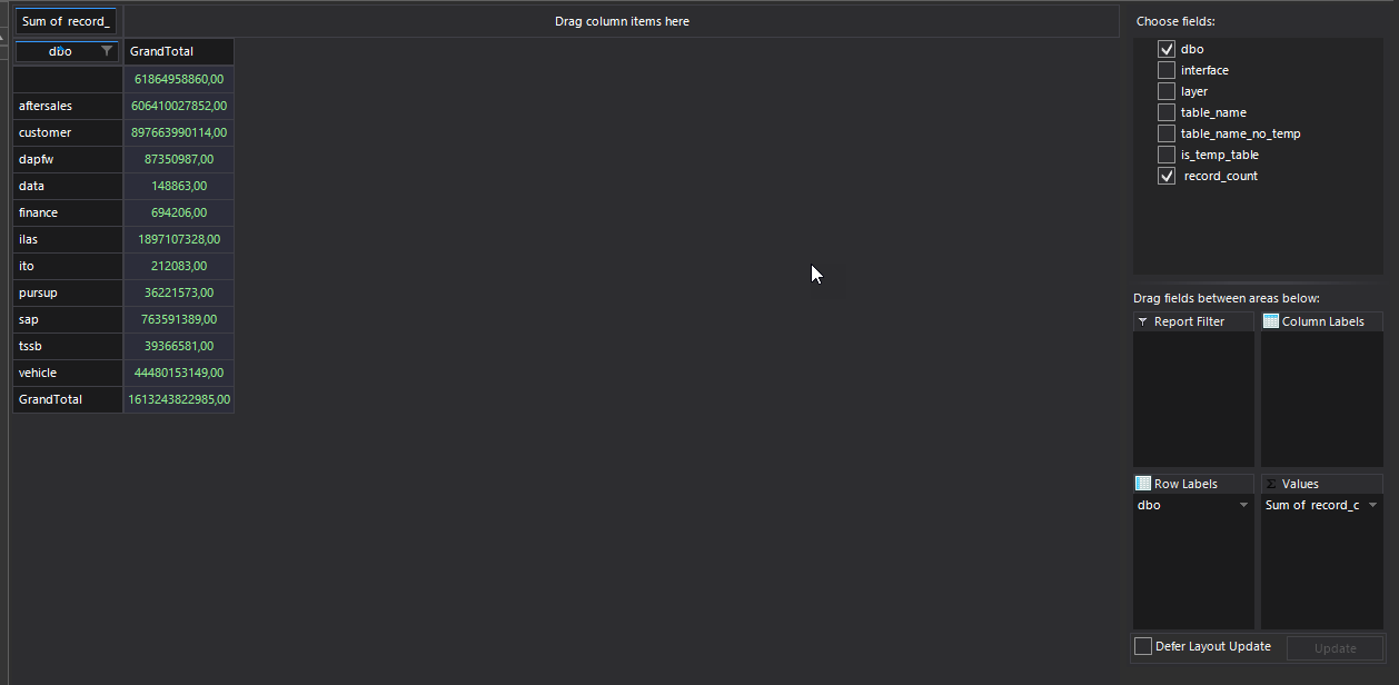 I want to format the thousand separators in a PIVOTVIEW