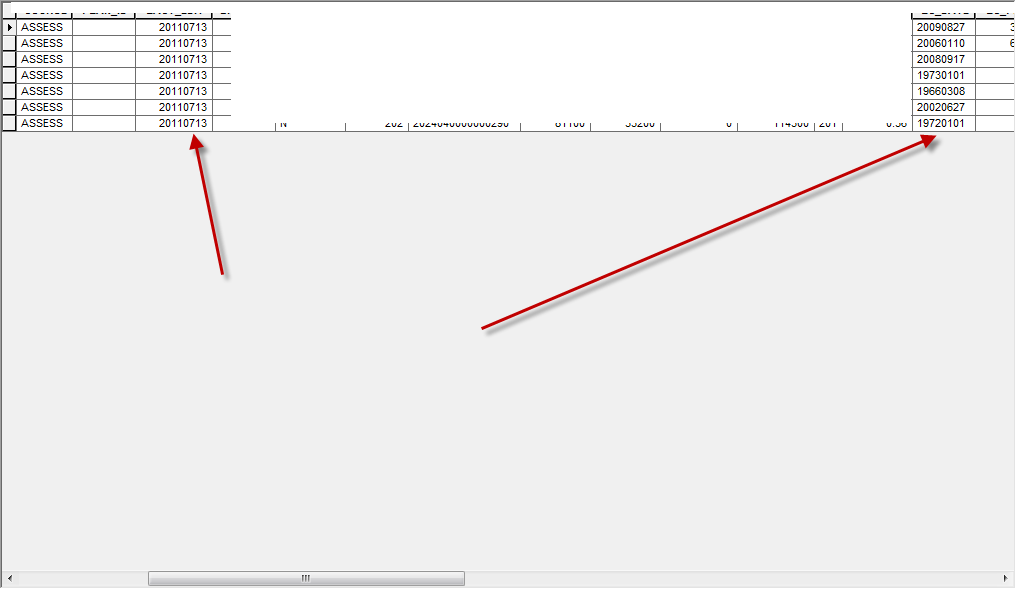 In the dbf I have values like this: 20110713, 20060110 etc.