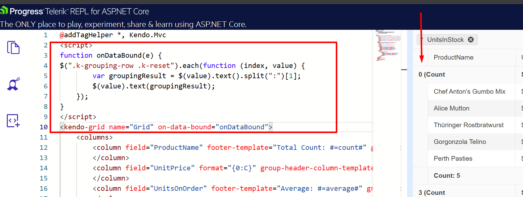 }Here is a REPL sample for your reference: https://netcorerepl.telerik.com/GTahwFug33Bejj0E19