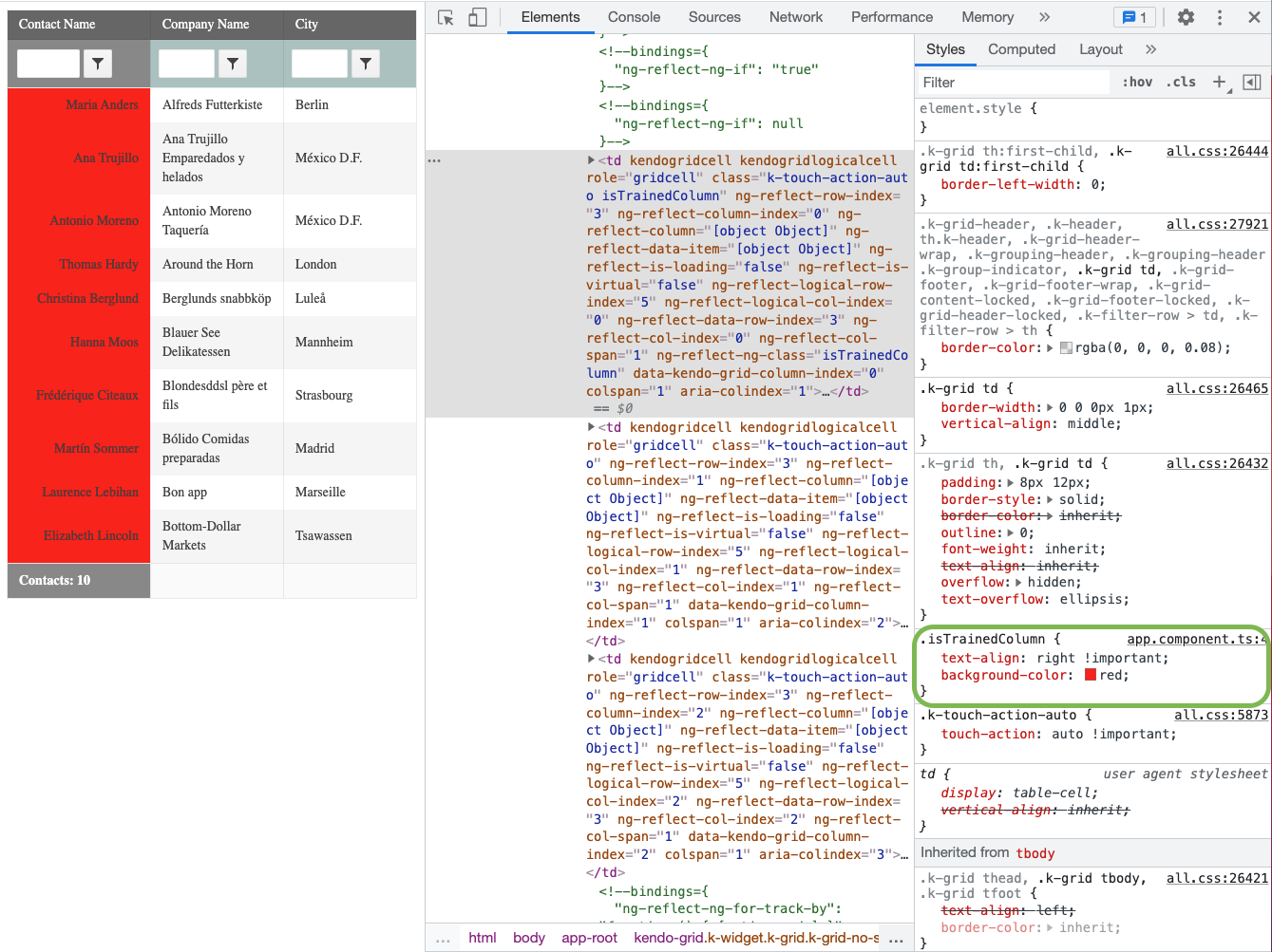 <kendo-grid-column field="displayname" title="DisplayName" [class]="'isTrainedColumn'"> </kendo-grid-column>