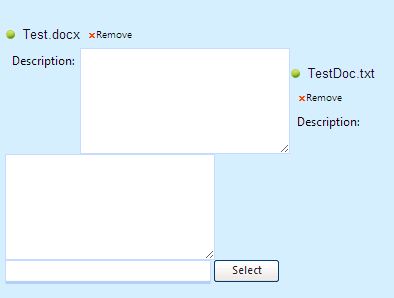 I used the latest RadAsyncUpload Additional files example and got it working perfectly. However I wanted to change from the textbox example to a textarea. It works great however the formatting is messed up. When I add the second (or more) file the file moves to the right of the TextArea instead of aligning to the left..See the attached screenshot. I looked at ruFileWrap and some other CSS but can't seem to find the right style to change. I need to get this working quickly. Any help would be greatly appreciated.