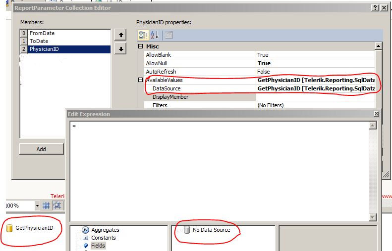 I have multivalue parameters in my report, i have datasource to get those values but when i did try to set display member and value member Edit screen show "No Data Source". I have attached a screen shot for your reference please have a look.