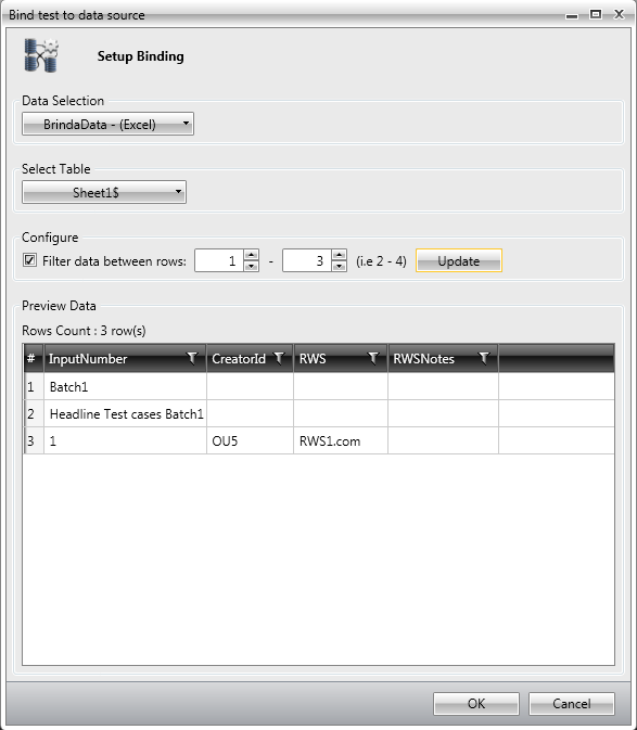 for my test scripts or cases project, i added one xls file having above urls with uid n pwds info and three databinds with above dbs connections info...