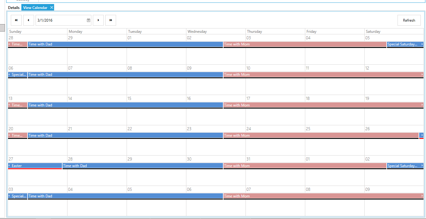 I am working on an app that will allow separated parents to easily plot out who has their children and when. I am wanting to use Telerik's controls to visually display display something that looks like a combination between a Gannt view and a calendar. Do you have any suggestions on how I might go about that?