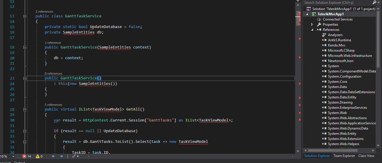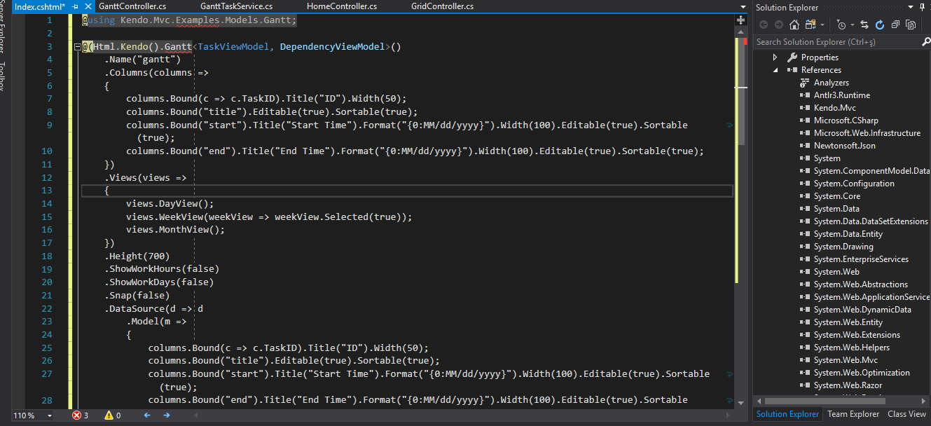The company I worked with asked me to create a Telerik mvc gantt demo.