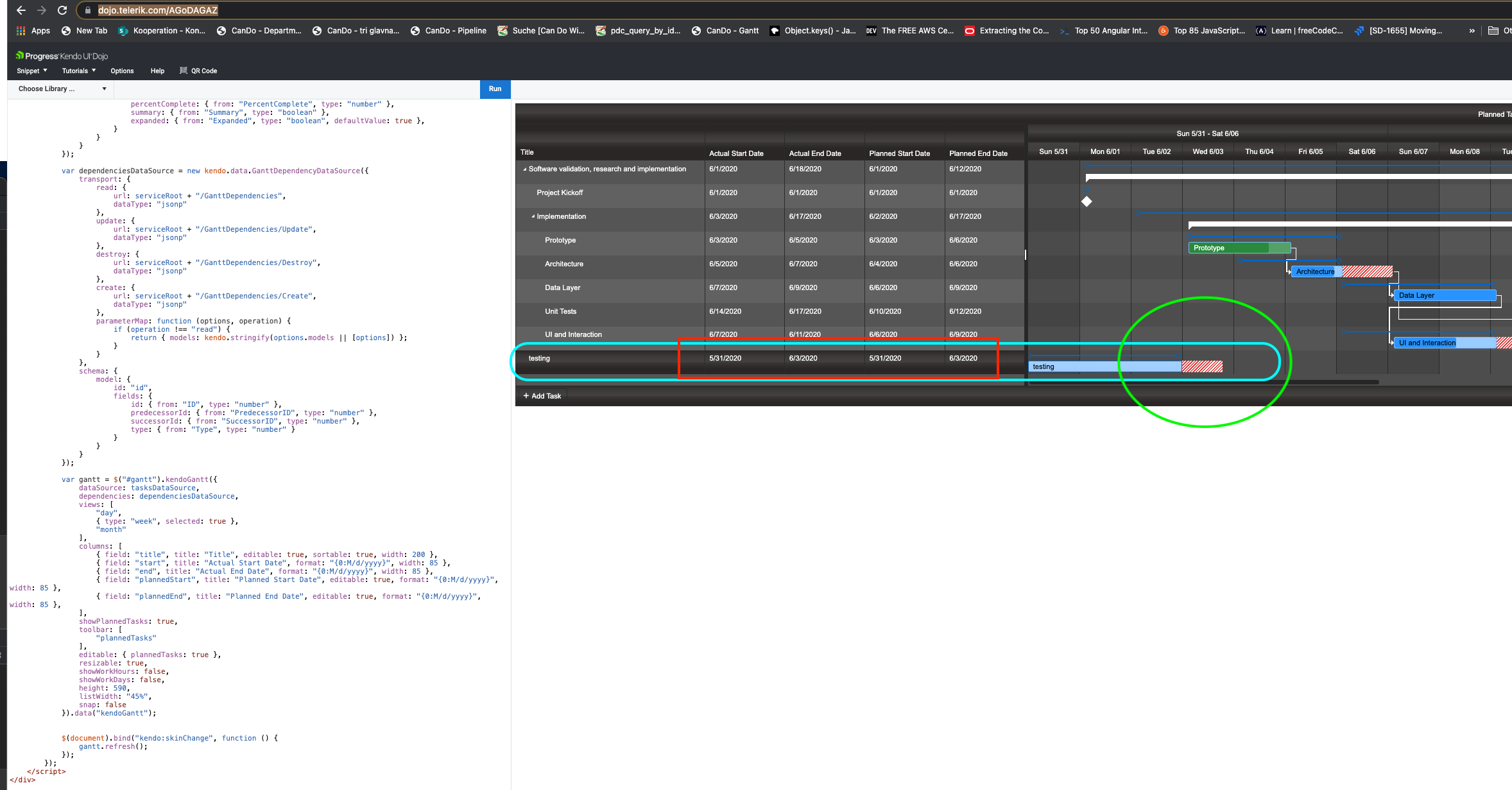 - I used dojo out of feature demo and modified it so planned start and end are editable.