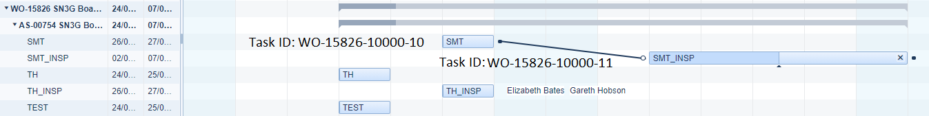 When dragging from the end of a task (on the right side white dot) to the start of the second task (left side on the white dot) the dependency links to the right side of the second task.
