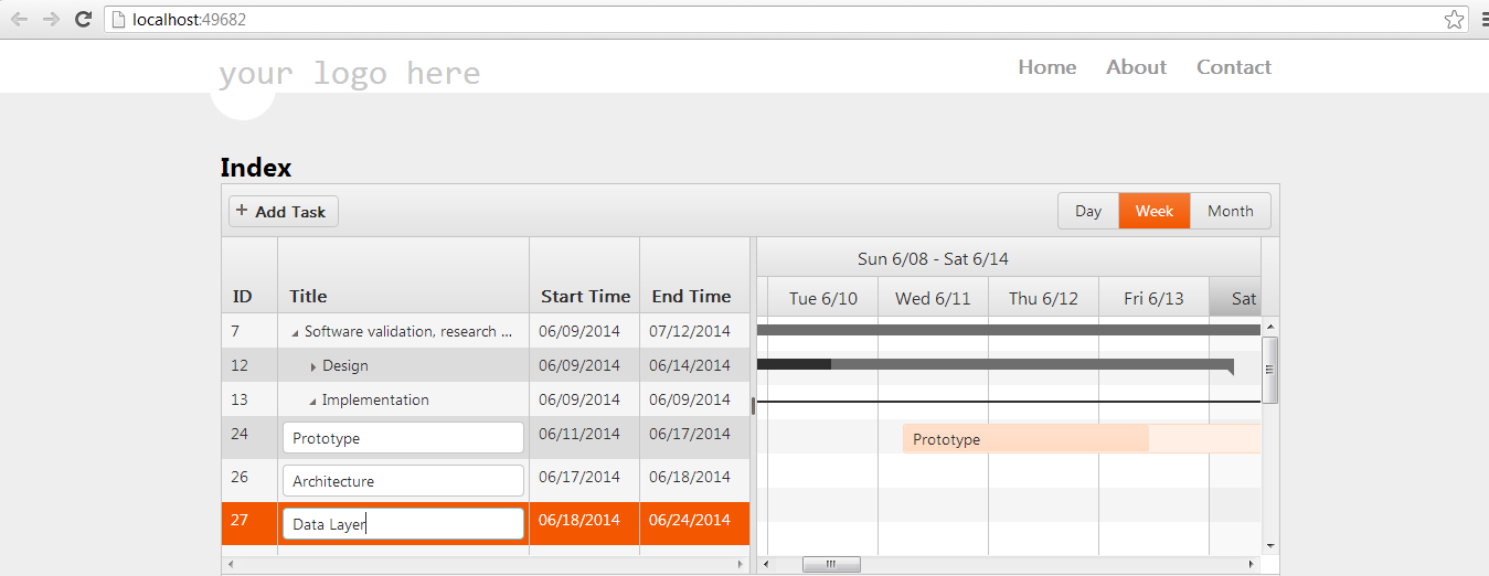 This looks like an old issue with the Gantt widget, that we've already fixed. Could you specify the version of the controls you are using, and possibly test with the latest ServicePack, where the issue should be fixed.