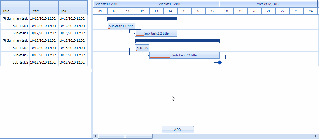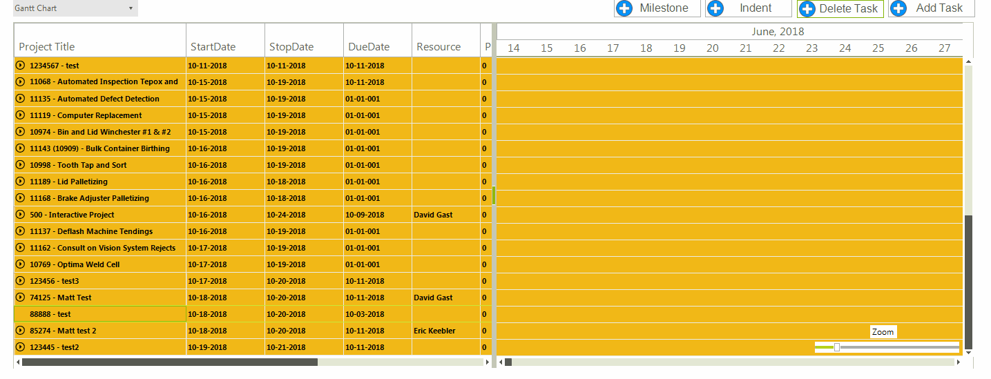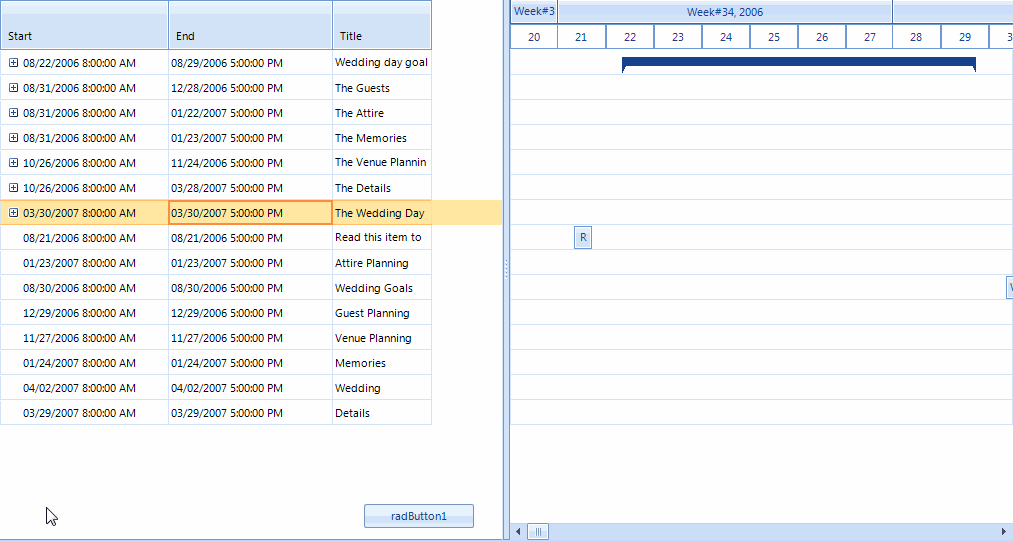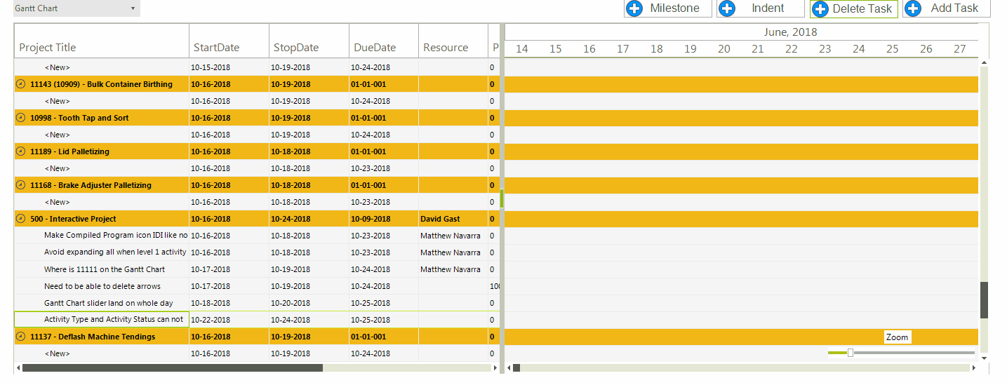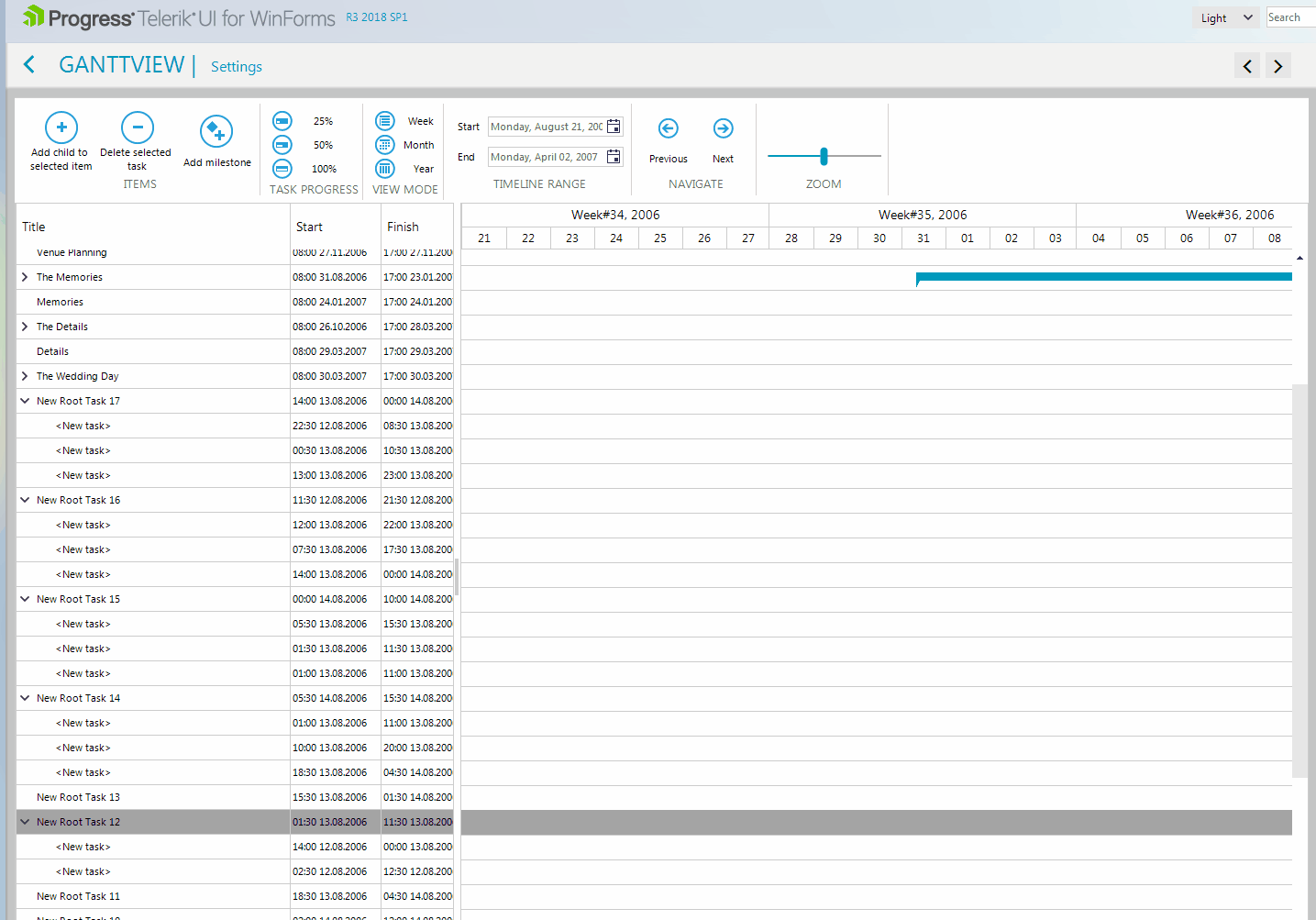 Viewer example under GanttView. When all of the Items are expanded, and a new
