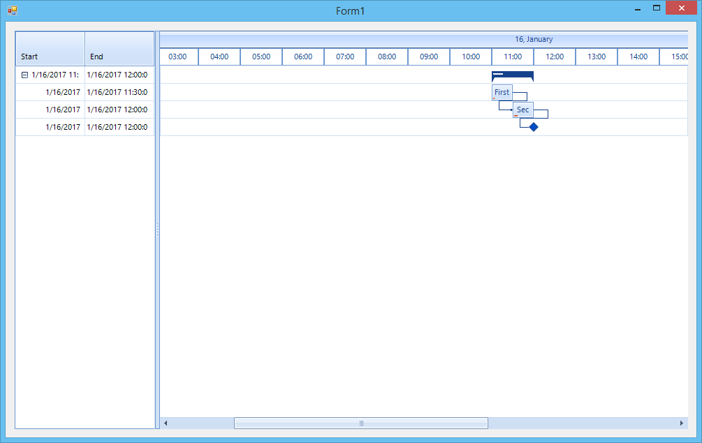 tasks.Rows.Add(2, 1, "First child task title", Today.AddHours(11), Today.AddHours(11.5), 10)