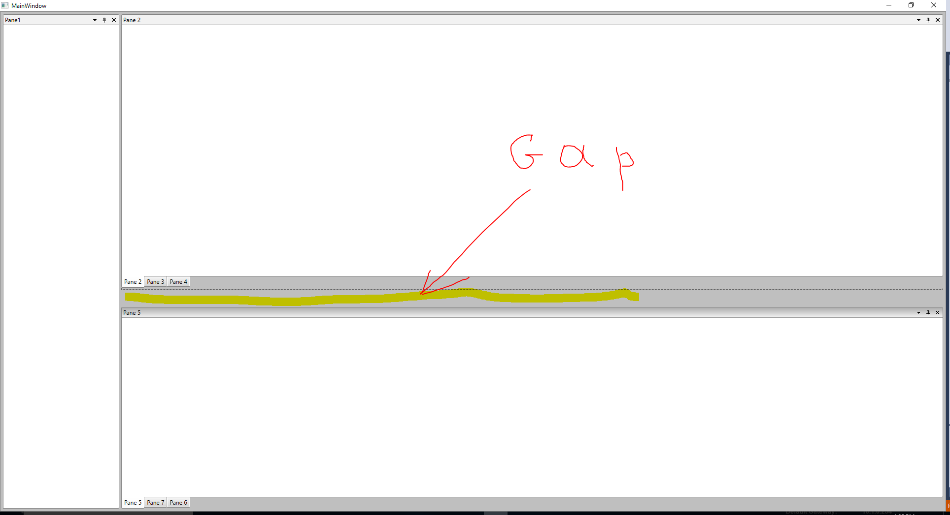 I am trying to evaluate WPF RadDocking control.  I am in the process of replacing ActiPro docking window control  with Telerik docking control in our WPF application.  However, I ran into an issue with Telerik’s docking control.  As shown in the picture in the attached file there is a gap between Pane 2 and Pane 5.  I would like to be able to pin all the panes.  It looks like the gap can be decreased only if one of the panes becomes a tabbed document.  Could you please advise on how to get rid of the gap without making it be a document?
