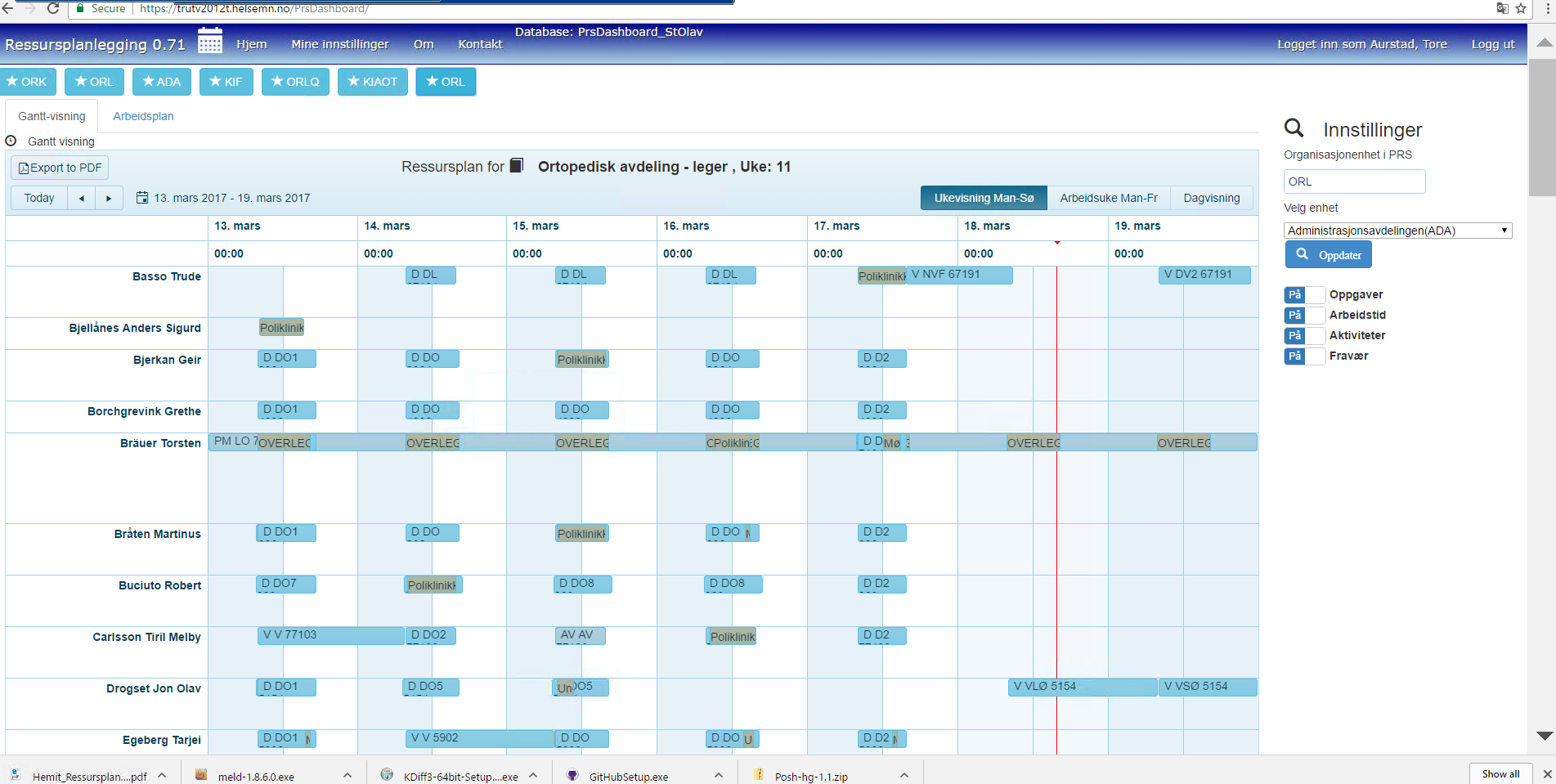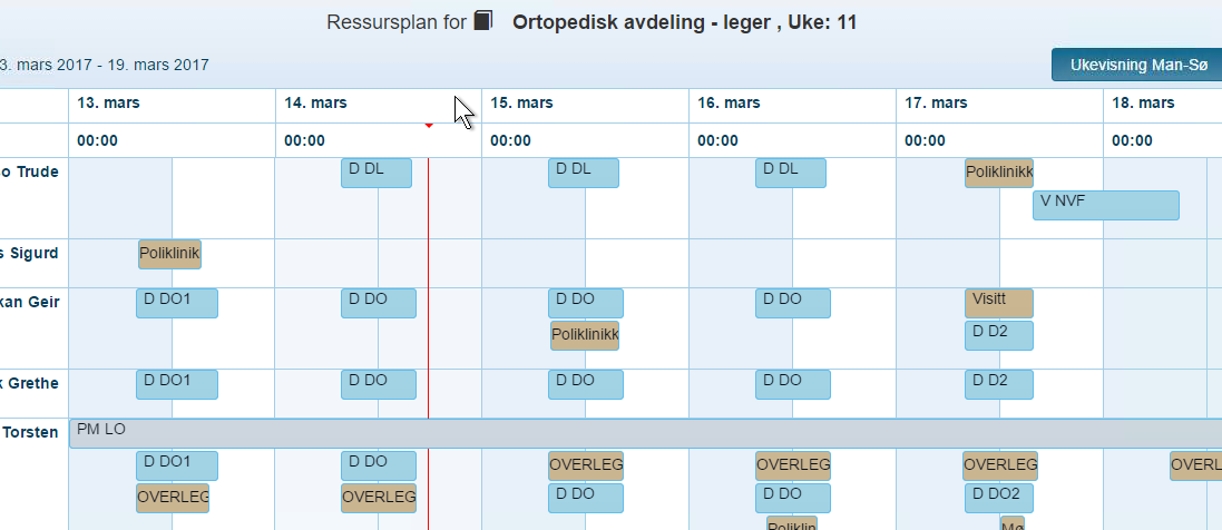 As far as I can understand, you need to display events (tasks), that are simultaneous on the same line, so you could save some vertical space. For example, on the image sent, the Poliklinik event for Geir should be displayed not below, but next to D DO event on the same day.