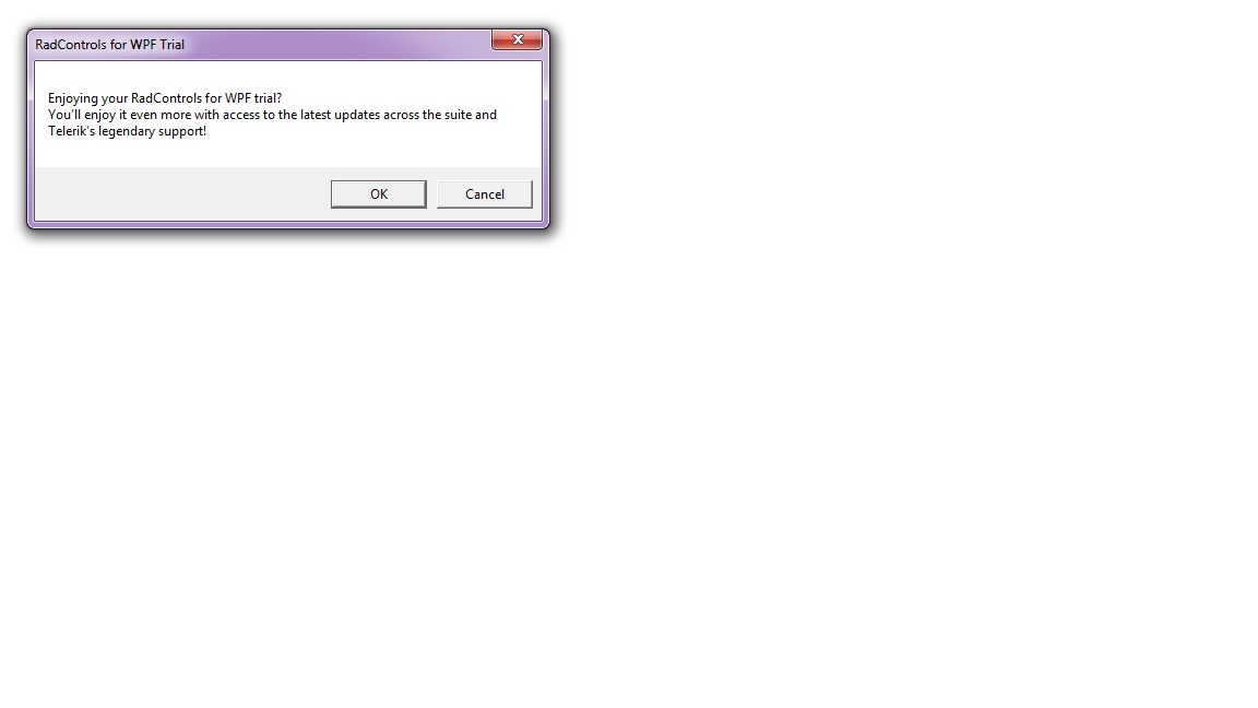 I am using a trial version of telerik RadControls for WPF. Hence when i launch my application, the telerik dialog box opens. I am not able to handle that using the generic handler and my following tests are failing.