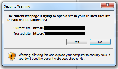GenericDialog SecurityWarningDialog = new GenericDialog(ActiveBrowser, "Security Warning", false, 1); // Click on the Yes buttonManager.DialogMonitor.AddDialog(SecurityWarningDialog);