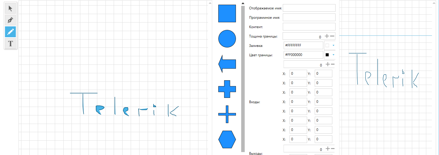 Hi. I'm trying to create a constructor for create a shapes. I have a problem with extracting geometry from RadDiagram. I need to get the geometry in string format from all the drawn elements. This topic has already been discussed here 2 years ago https://www.telerik.com/forums/geometry-to-xaml. Now I make it so that for each coordinate in the geometry I add a position, but for some reason there is a shift to the left and down. What could be the problem? For example i have geometry for picture 1: