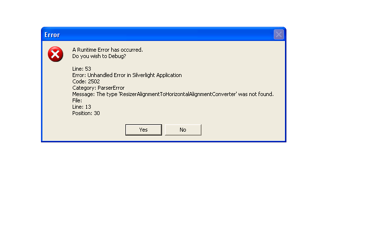 The type 'ResizerAlignmentToHorizontalAlignmentConverter' was not found