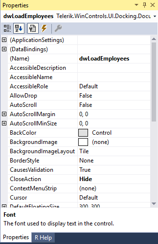 - Hide: When a DockWindow has its CloseAction set to Hide, this window is only closed (hidden) in RadDock. However, this window is not detached from its RadDock and you can manage it from the RadDock collections.