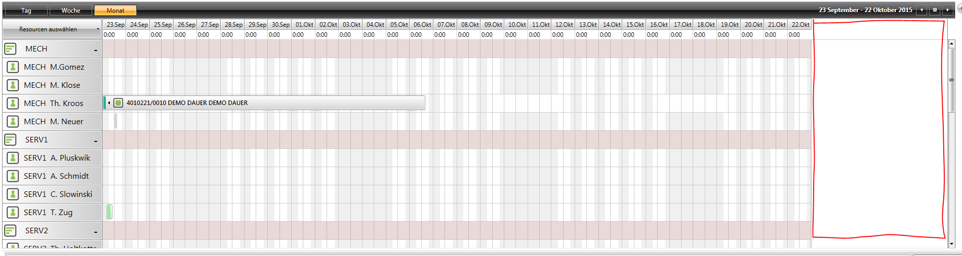 <telerik:RadScheduleView.ViewDefinitions> <telerik:DayViewDefinition Orientation="Horizontal" GroupHeaderDateStringFormat="{}{0: dddd dd/MMM}" GroupFilter="{Binding GroupFilter}" AppointmentFilter="{Binding AppointmentsFilter}" /> <telerik:TimelineViewDefinition Title="Week" VisibleDays="7" GroupFilter="{Binding GroupFilter}" TimerulerMajorTickStringFormat="{}{00:%H:mm}" AppointmentFilter="{Binding AppointmentsFilter}" LargeChangeInterval="7d" TimerulerGroupStringFormat="{}{0: dddd dd/MMM}" StretchAppointments="True" StretchGroupHeaders="True" /> <telerik:TimelineViewDefinition Title="Month" VisibleDays="30" GroupFilter="{Binding GroupFilter}" AppointmentFilter="{Binding AppointmentsFilter}" TimerulerGroupStringFormat="{}{0: dd/MMM}" TimerulerMajorTickStringFormat="{}{00:%H:mm}" LargeChangeInterval="1m"/> </telerik:RadScheduleView.ViewDefinitions>If i start my Programm on a monitor with high resolution there is a white space on the right side of the scheduler in each ViewDefinition ( see attached image ).