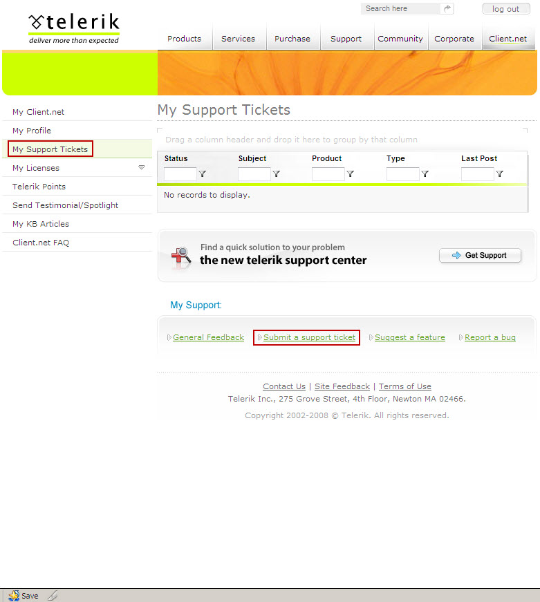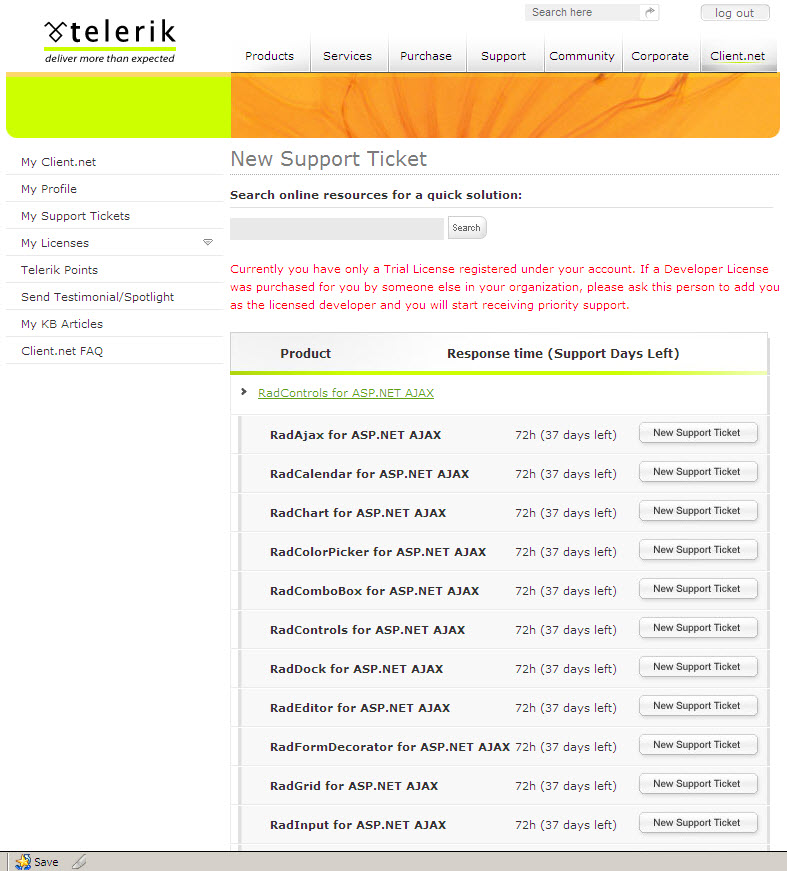 how do i open a ticket and attach the code to telerik only but noone else?