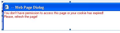 The message is: "You don't have permission to access this page or your cookie has expired!