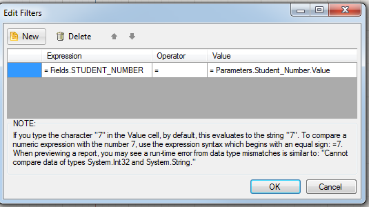 The error I am getting is: An error has occurred while processing Report 'Report1': Cannot perform '=' operation on System.Double and System.String.