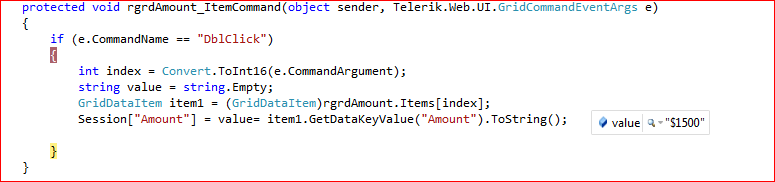 Session["Amount"] = item.GetDataKeyValue("Amount").ToString();