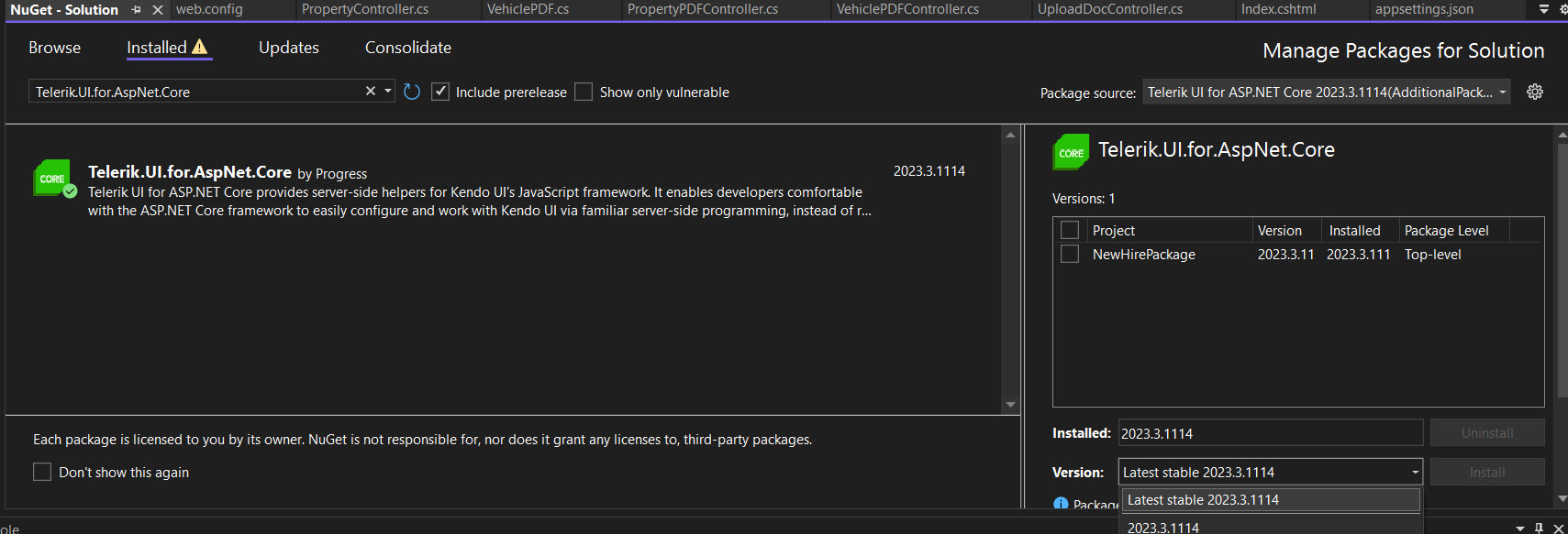 do I need to upgrade the "Telerik.UI.for.AspNet.Core" to higher version? Please see the attached picture, I dont see any higher version.