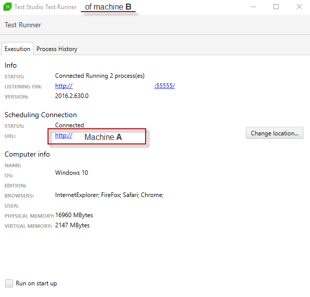 I have the Scheduling Server and Data Server installed on Machine A. I have the Run-Time excuction installed on Machine B. Machine B is connect to Machine A as you mention in the above post. When I try to run the test on Machine B from Machine A I get the following error. " Scheduling Server at Machine A is reporting that it connot communicate with storage at Machine B."