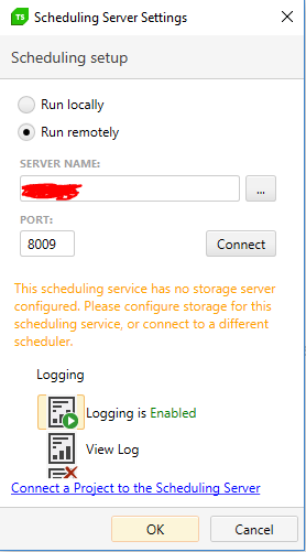 Please, setup the scheduling server at your localhost as I pointed out on the screenshot attached and click on "Connect" button.