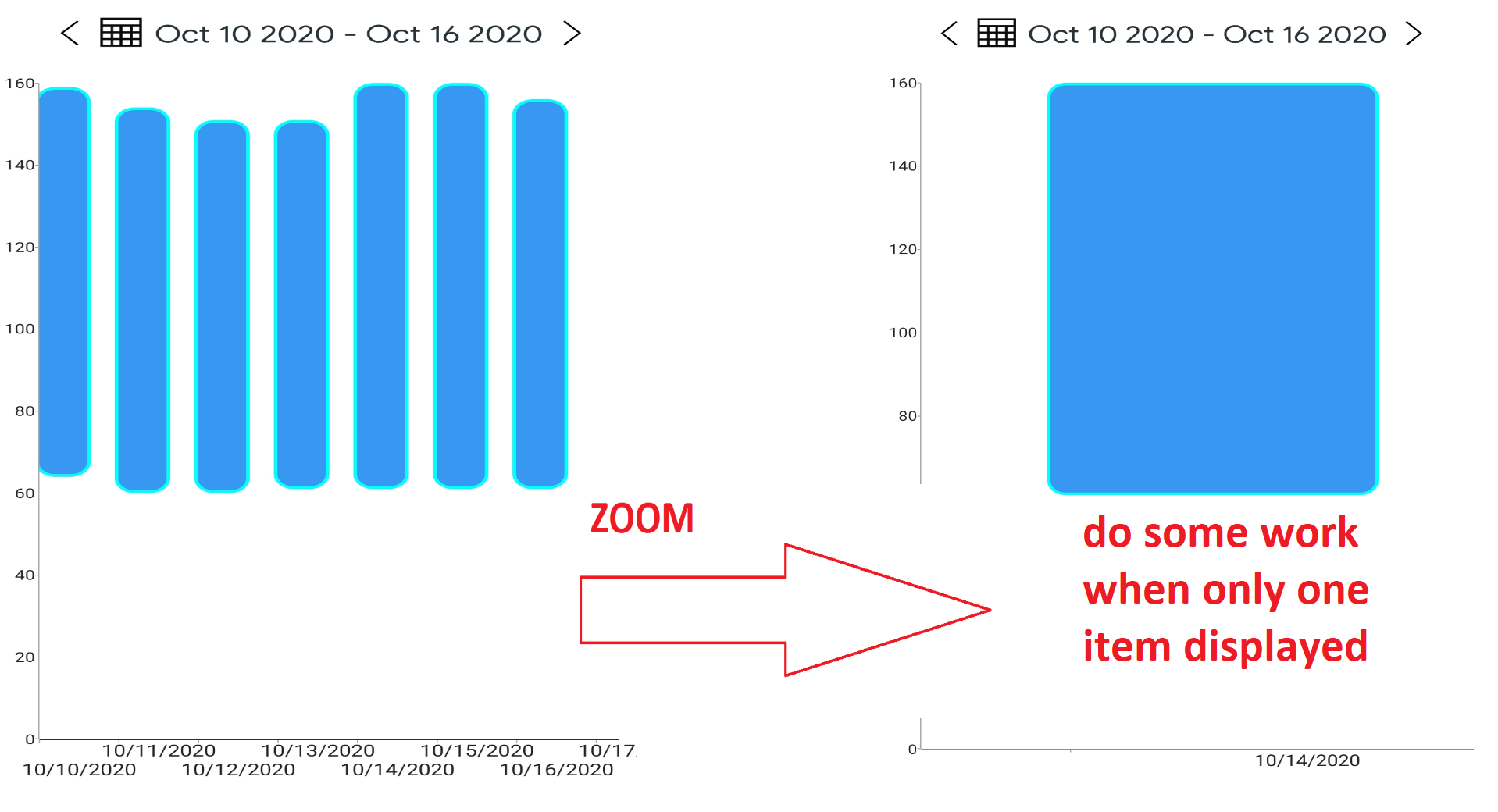 Tell me how to get the items that are currently displayed on the chart after zooming and scrolling?
