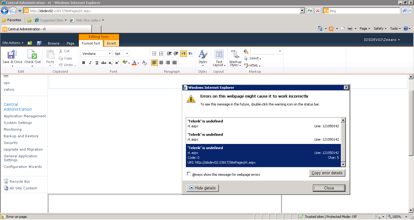 I have installed telerik sharepoint controls on the sharepoint foundation 2010 website and using radeditor on the site for editing wiki pages. the issue is when i am adding a new page than RadEditor loads and works fine. After saving and closing the page the content get saved but when i edit the page than radeditor control does not load properly and give the javascript error message "Telerik is not defined". Please see the attached images for details.