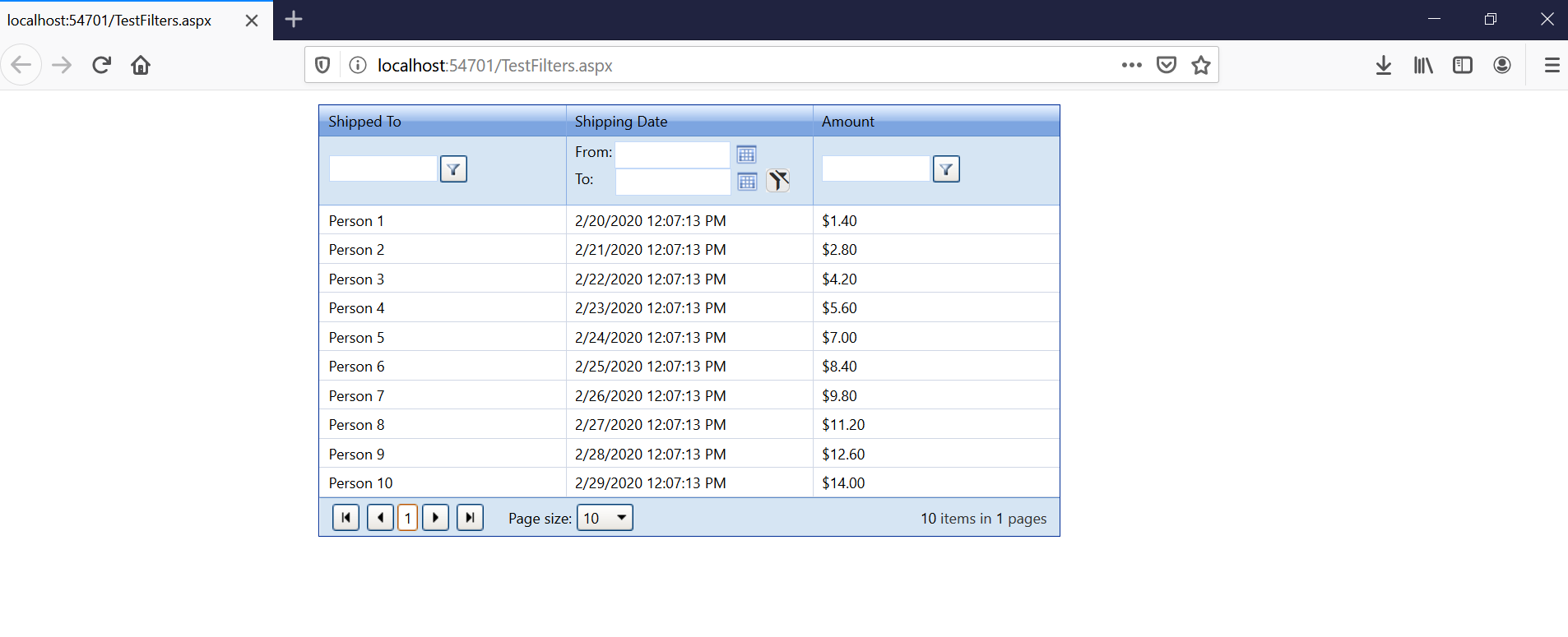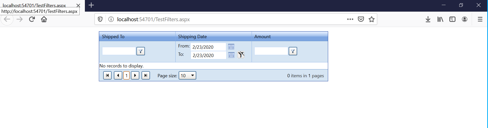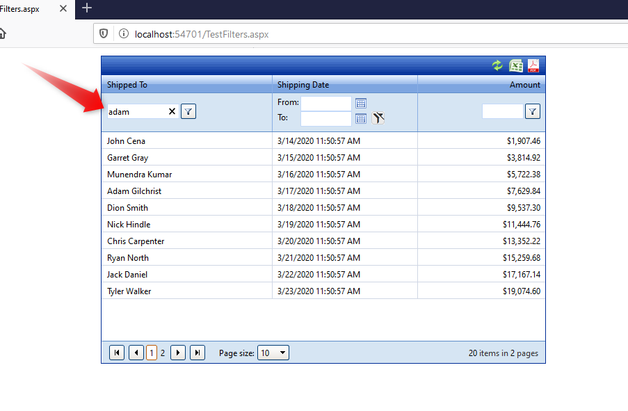 EnableLinqExpressions="false" OnNeedDataSource="TestFilterRadGrid_NeedDataSource" OnItemCreated="TestFilterRadGrid_ItemCreated">