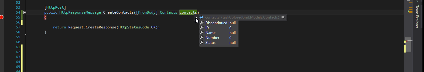 public HttpResponseMessage CreateContacts([FromBody] Contacts contacts)