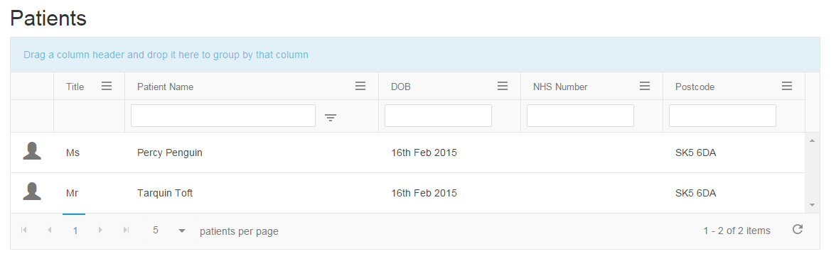 $(document).ready(function () { $.support.cors = true; // For IE8 & 9 $("#patientList").kendoGrid({ dataSource: { transport: { read: { url: "http://10.100.23.92:8082/biodose-connect/patients", dataType: "json", type: "GET" } }, pageSize: 5 }, schema: { model: { fields: { fullname: { type: "string" }, date_of_birth: { type: "date" }, nhsnumber: { type: "string" }, postcode: { type: "string" } } } }, reorderable: true, groupable: true, sortable: true, filterable: { mode: "row" }, pageable: { refresh: true, pageSizes: true, buttonCount: 5, messages: { itemsPerPage: "patients per page" } }, columnMenu: { columns: true, filterable: false, sortable: true }, columns: [ { width: 60, template: "<i class='glyphicon glyphicon-user default-userImg'> </i>" }, { field: "title", title: "Title", width: 100, filterable: false }, { field: "fullname", title: "Patient Name", filterable: { cell: { showOperators: true, operator: "contains", suggestionOperator: "contains" } } }, { field: "date_of_birth", title: "DOB", format: moment().format("Do MMM YYYY"), width: 200, filterable: { ui: "datepicker", cell: { showOperators: false, operator: "contains", suggestionOperator: "contains" } } }, { field: "nhsnumber", title: "NHS Number", width: 200, filterable: { cell: { showOperators: false } } }, { field: "postcode", title: "Postcode", width: 200, filterable: { cell: { showOperators: false, operator: "contains", suggestionOperator: "contains" } } } ], selectable: "row", change: function(e) { var grid = $("#patientList").data("kendoGrid"); var selectedRow = grid.dataItem(grid.select()); console.log(selectedRow.patient_id) } });});I've attached a screenshot of my HTML output showing no date picker on the filter. Have I missed something?