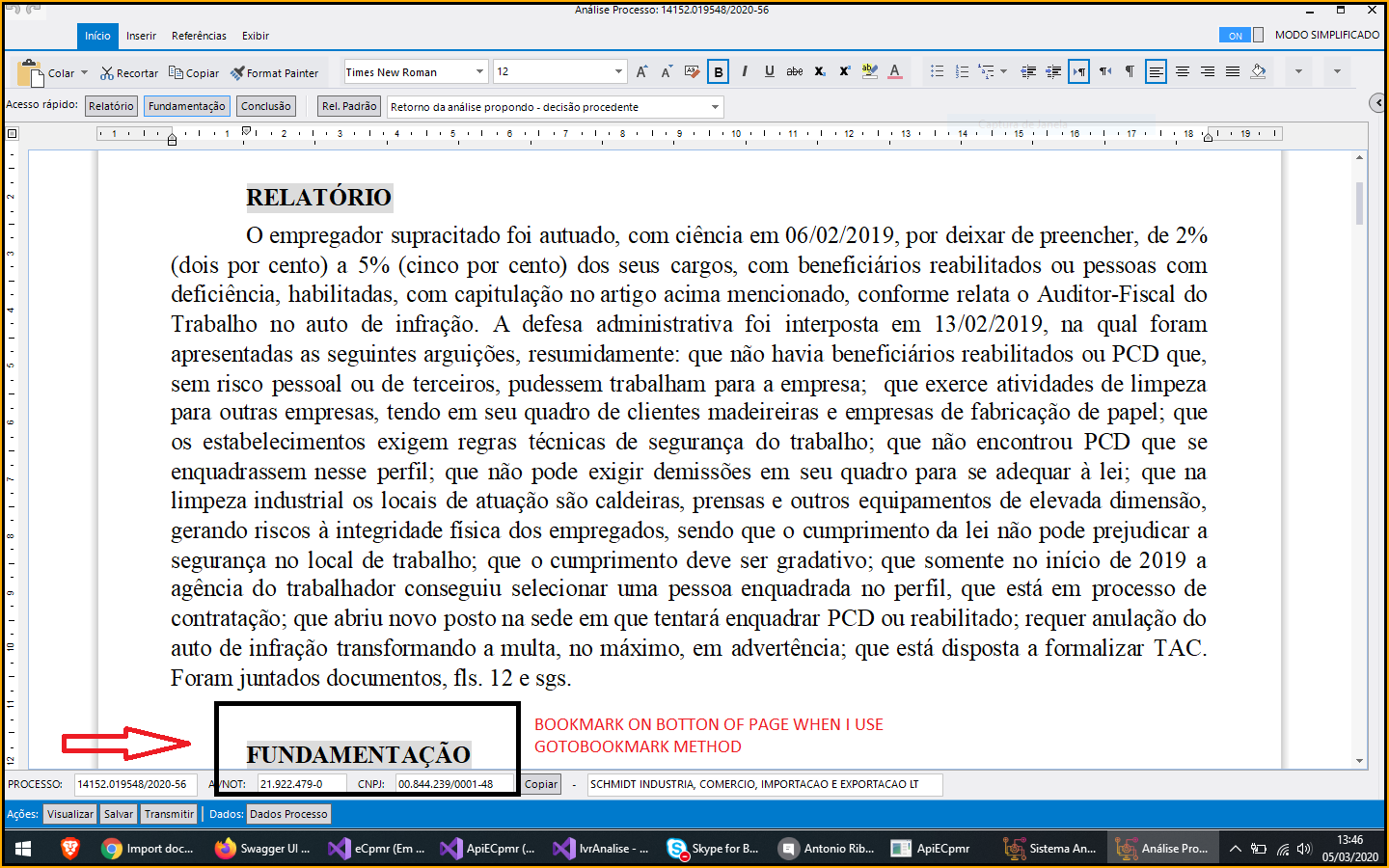 I attached two pictures to explain batter the first one how the method gotobookmark is working and the second how i would like to be.
