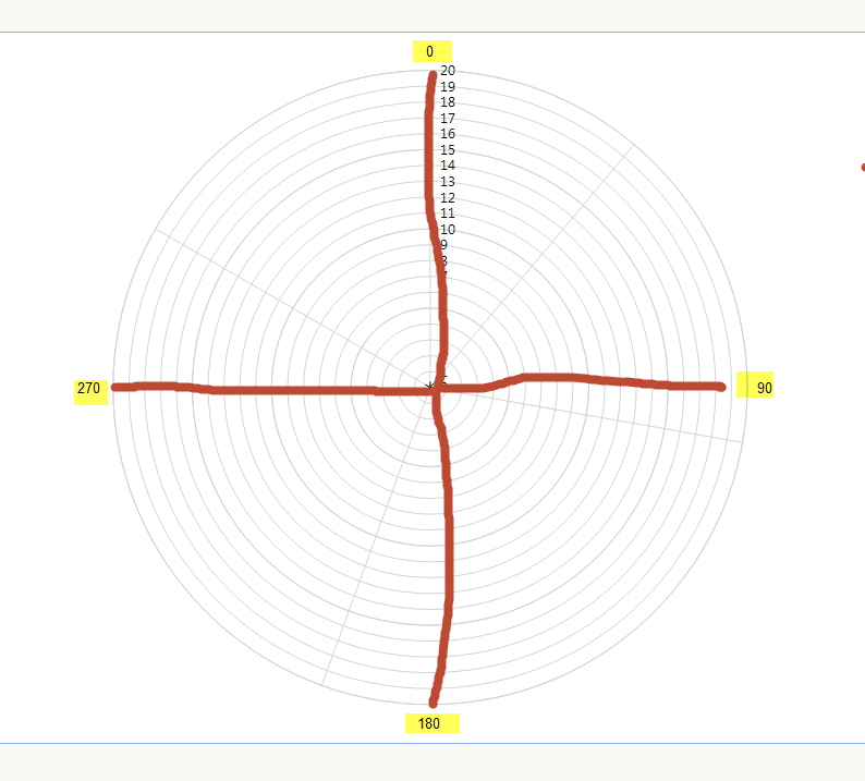 I created a Rose Radar Graph to mimic a Polar Graph, I have the angular axis labeled at each 90 degree interval with a max of 360 degrees. Is there a way to add 180 to that value? also, the Graph Axis lines aren't showing as I want them too, i've attached a screenshot as well.