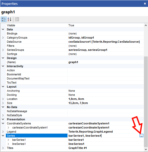 From the screenshot you supplied I believe you directly added a Graph, and did not use the Graph Wizard. I would recommend using the Wizard as it will help you set everything up faster. It will create and configure category-groups, series-groups, coordinate-system, and series which all are required to display a graph. In case you do want to set up the graph manually, we have an article in our documentation explaining the necessary steps called "How to Create Column Chart".